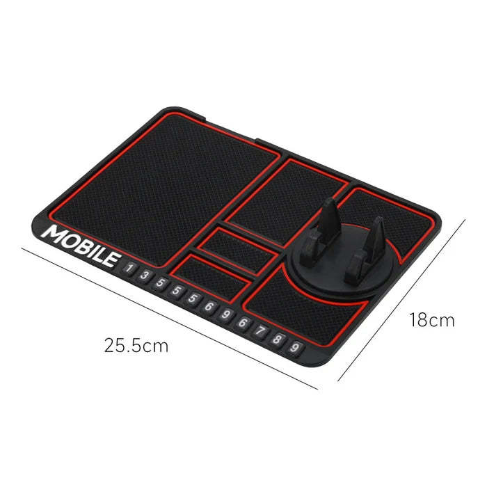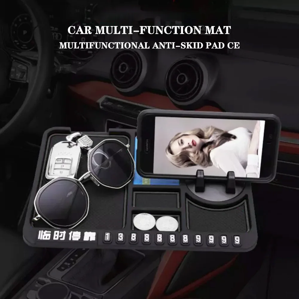 - MULTI-FUNCTION: This non slip car dashboard mobile holder organizer for keys, coins, cards, pens mat uses multi-function devices. Car phone holder / car storage pad / vehicle temporary parking mobile number pad/ mobile navigation bracket. This car accessories organizer comes with a temporary parking phone numbers sheet that can be attached to the corresponding number slot for temporary parking.