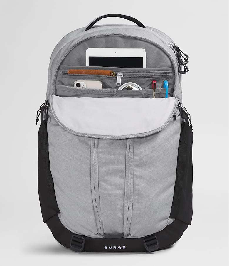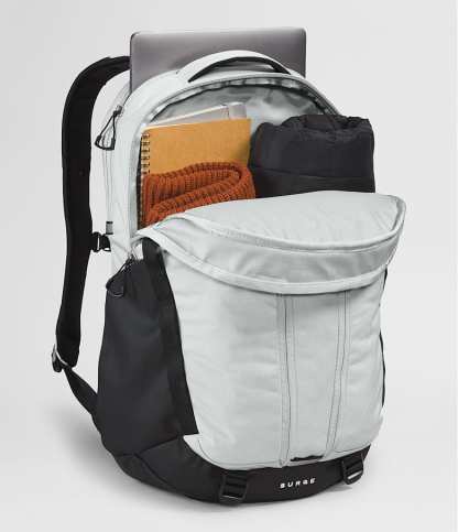 With a 31-liter capacity, the Surge Backpack is a spacious, streamlined pack you can take almost anywhere. Clever design features like a water-repellent finish, 16'' laptop sleeve, and the ability to stand unsupported make it indispensable.