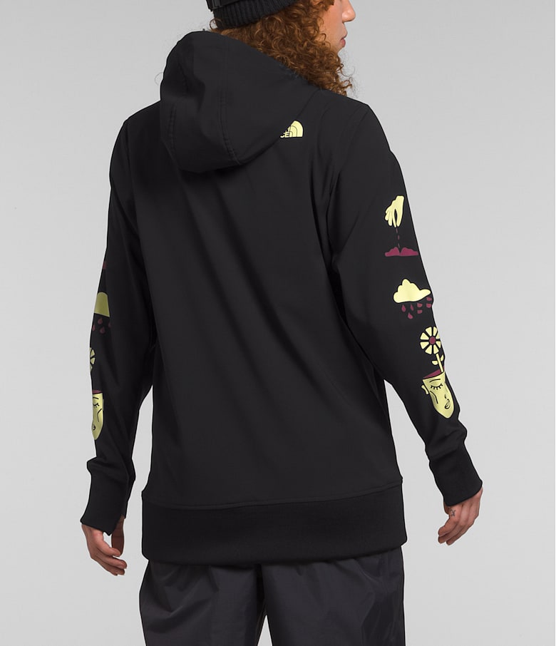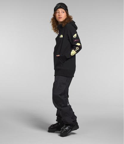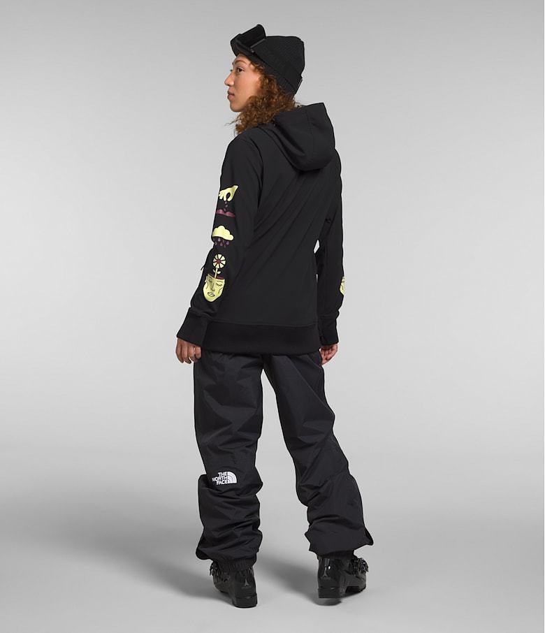 The relaxed-fit Women’s Tekno Pullover Hoodie features a secure-zip kangaroo pocket and 91% recycled, water-repellent fabric that helps you stay dry and warm on and off the mountain.